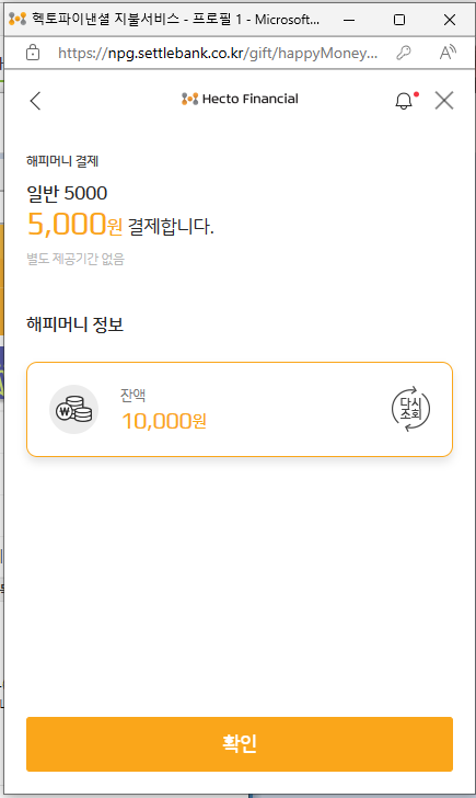 4. 잔액을 학인하신 후 확인을 버튼을 누릅니다.