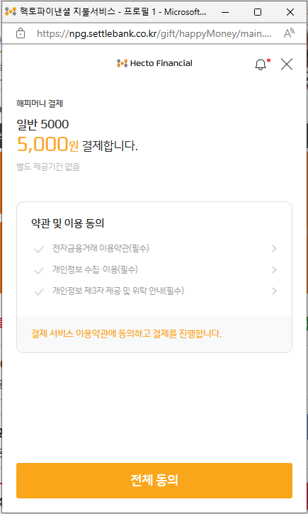 2. 전체 동의 버튼을 누릅니다.