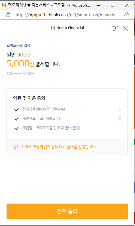 2. 전체동의를 누릅니다.