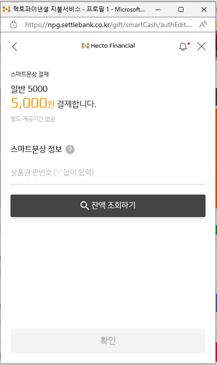 3. 상품권 번호 입력 후 잔액조회하기 누릅니다.