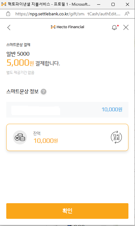 4. 잔액 확인 하신 후 확인을 누릅니다.