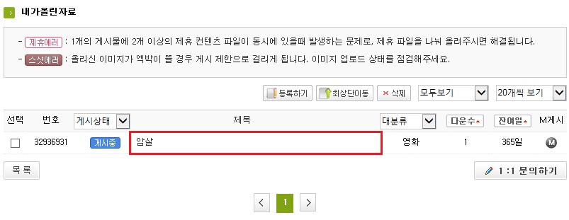 1. [내정보] -> [내가 올린자료] 클릭 부탁 드립니다.