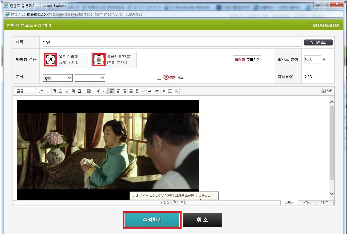 3. [수정하기] 버튼 클릭 부탁 드립니다.