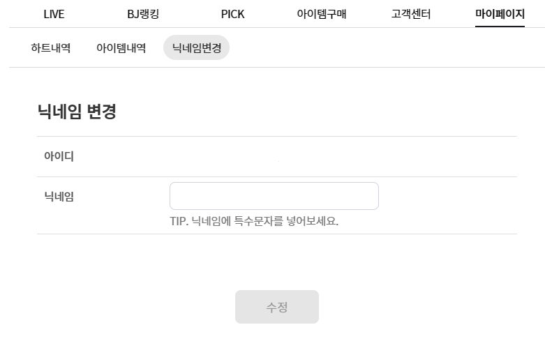 ④ 닉네임 변경 : 방송내 채팅에서 사용하는 닉네임 변경